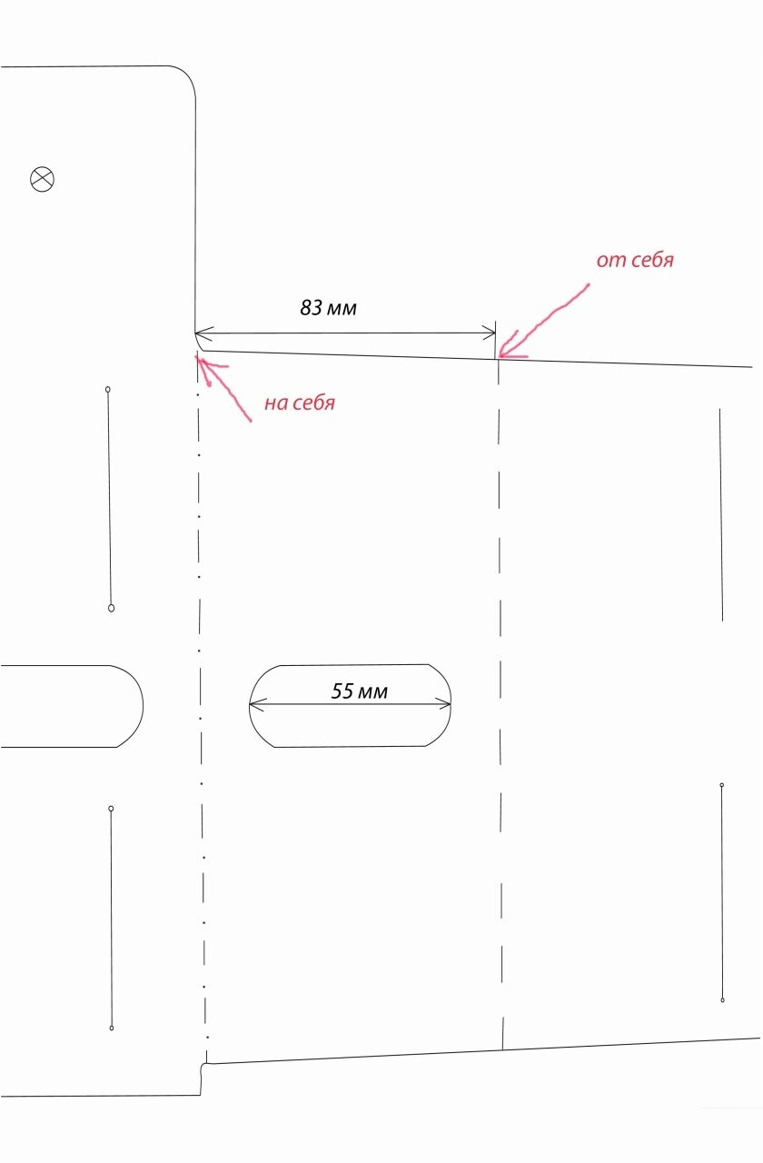 Теперь устанавливаем кнопку. Если нет пробойной кнопки, можно воспользоваться магнитной. Кнопки устанавливаются на места, отмеченные на выкройке кружком с крестиком.
